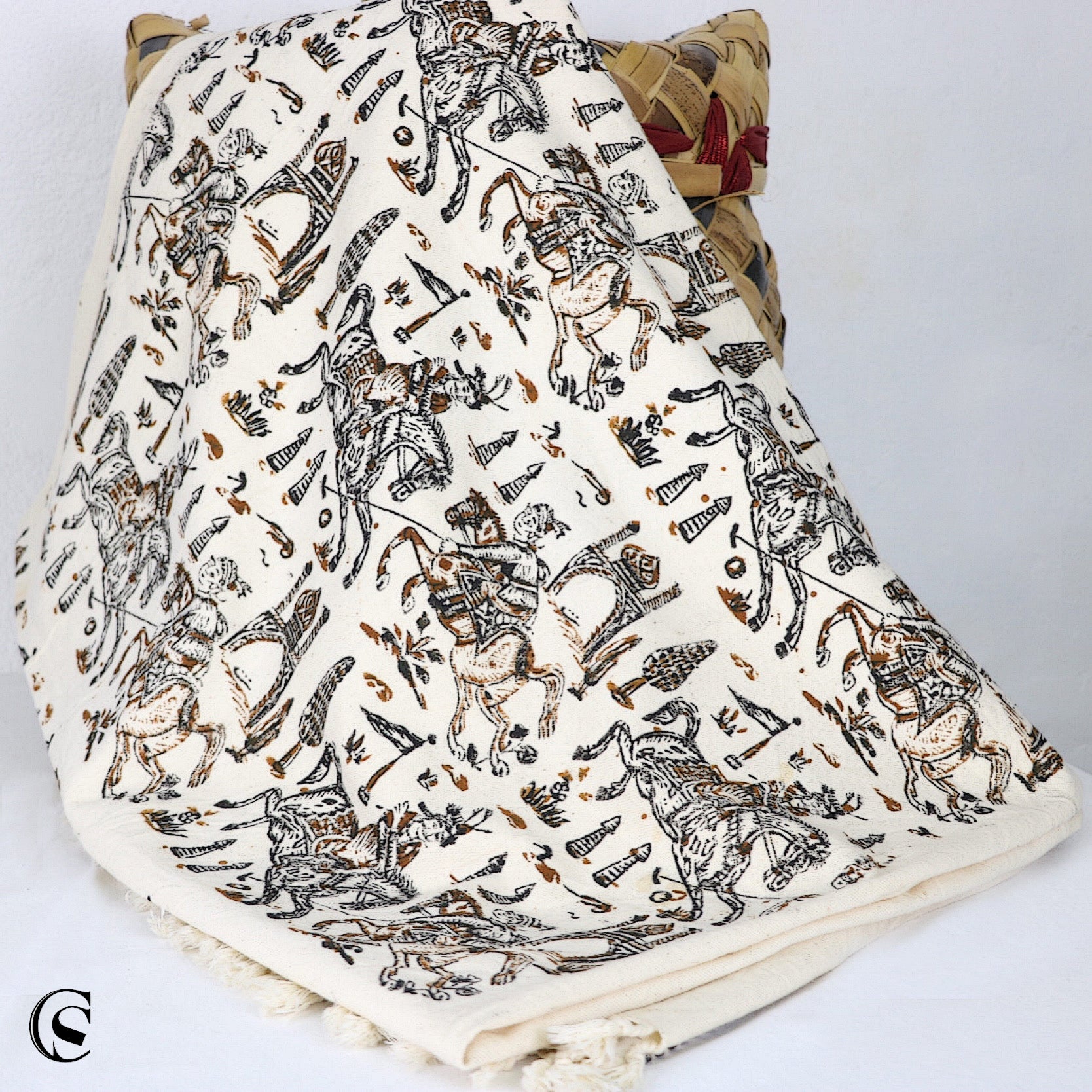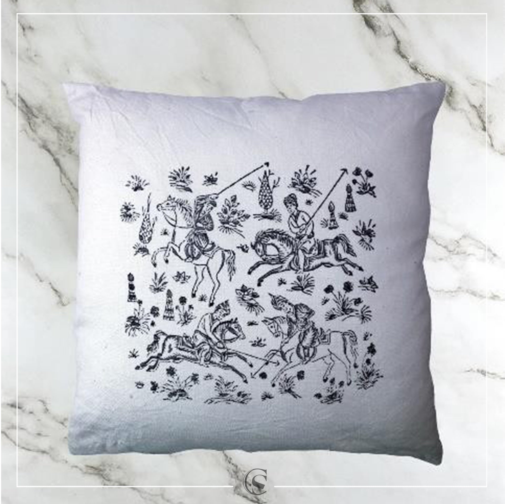Apportez une touche finale à votre décoration avec le coussin Tchogan. Du salon à la chambre, il s’adaptera parfaitement à votre intérieur. N’hésitez pas à mélanger les couleurs et les imprimés, pour composer votre ambiance. Travaillé avec les techniques du Qalamkar et imprimé au bloc avec des couleurs naturelles, son dessin représente un jeu équestre en équipe proche du polo pratiqué dans les courses persanes à partir du 4e siècle.