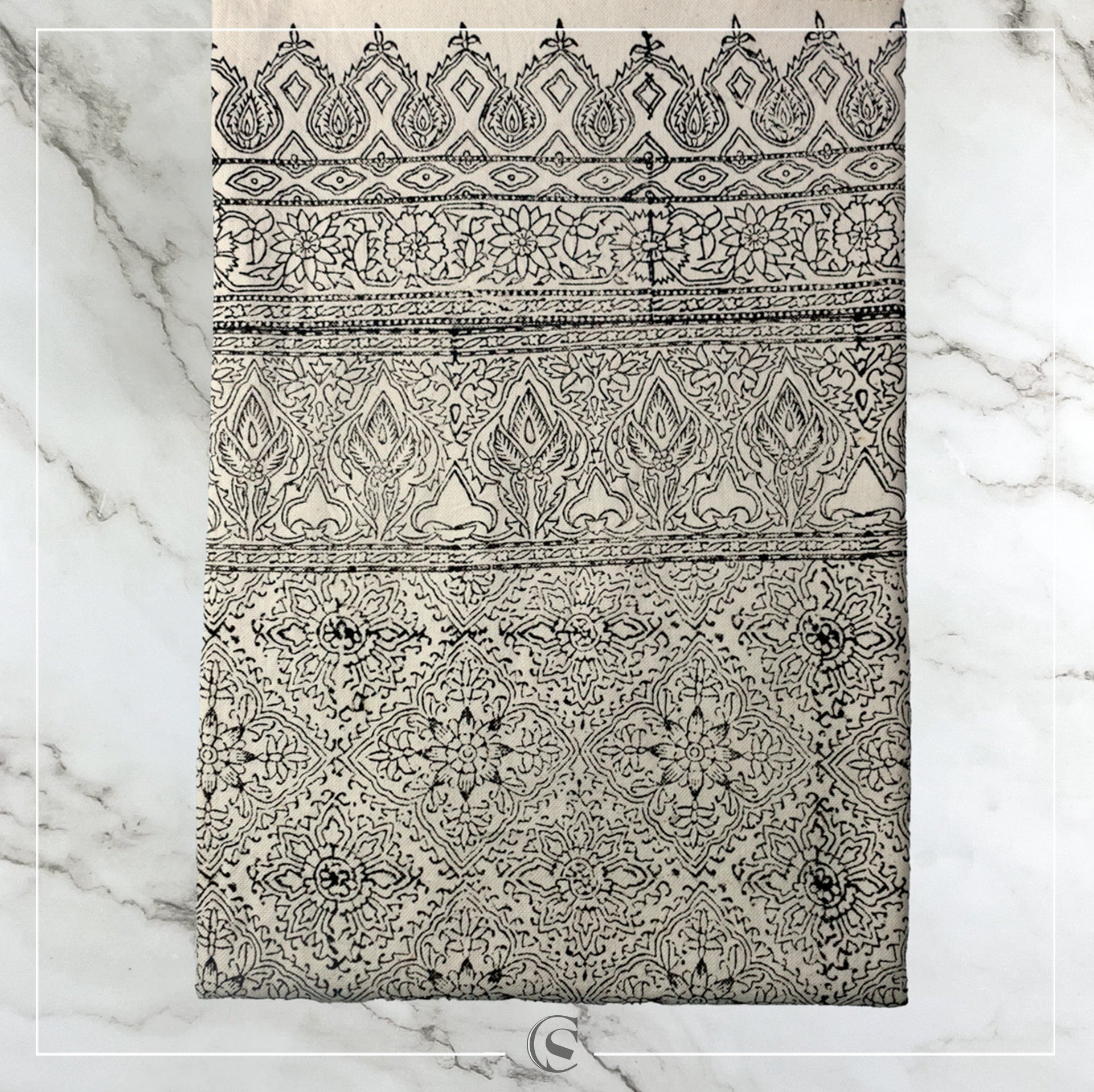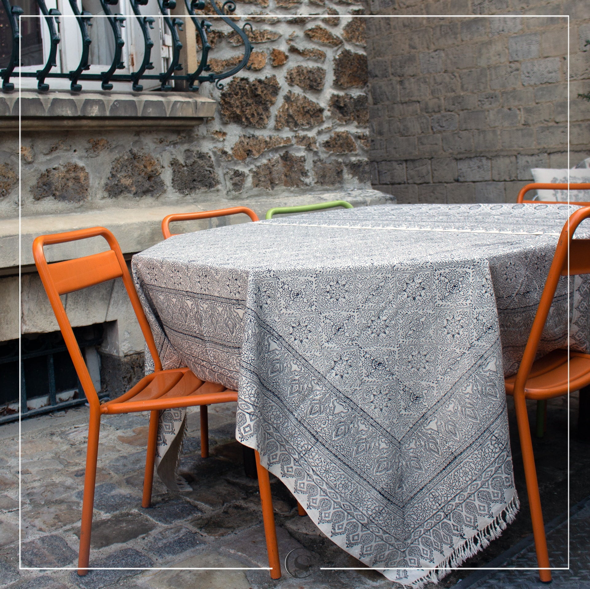 La nappe Naghsh Jahan doit son nom au célèbre carré d’Ispahan, symbole d’un monde raffiné et poétique. Travaillée selon les techniques ancestrales du Qalamkar, elle est imprimée à la main avec des motifs qui allient sobriété et élégance. Un choix parfait pour une table chic, moderne et inspirée d’un savoir-faire ancien.