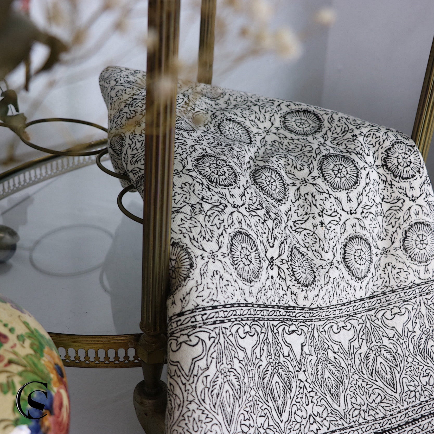 Nos plaids confectionnés en coton de qualité seront parfaits pour ajouter une touche d’élégance et de chaleur à votre foyer. Avec leurs grandes dimensions 130×170 cm, et leur style intemporel, ils embelliront votre intérieur et vous accompagneront pour vos soirées d’hiver. Travaillés avec les techniques de Qalamkar, ils sont imprimés au bloc avec des couleurs naturelles et des dessins reflétant le goût ancestral aux tendances modernes. N’hésitez pas à les mixer entre eux pour encore plus d’originalité.